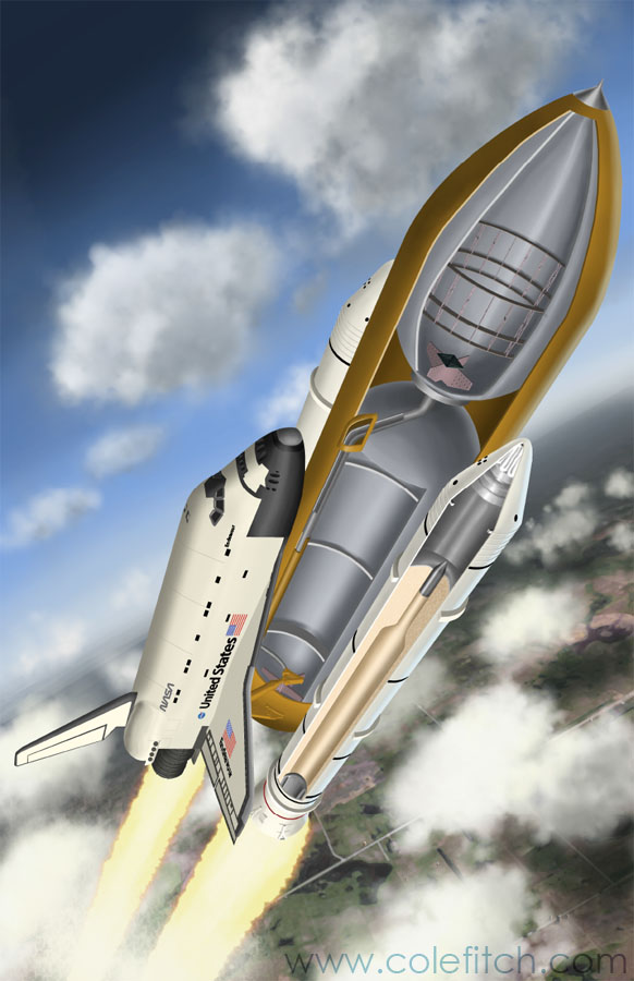 Cutaway of the Endeavor Space Shuttle Fuel Containers - Adobe Illustrator and Photoshop